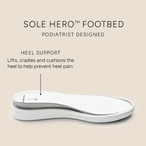 Sole Hero® Footbed. Podiatrist-designed with built-in heel, arch, and forefoot support.