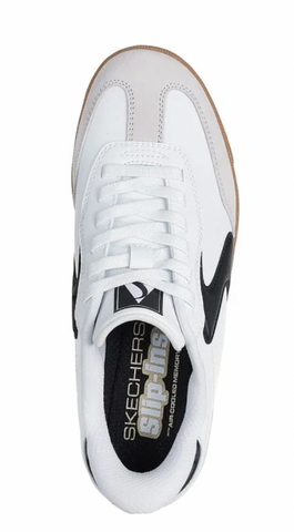 A modern classic meets easy-wearing comfort in Skechers Hands Free Slip-ins®: Hotshot - Perfect Choice. Designed with our Heel Pillow®, this Court & Classics slip-on features a duraleather and suede overlay upper with fixed stretch laces, contrast 'S' quarter logo detail, and our signature Skechers Air-Cooled Memory Foam® cushioned insole.