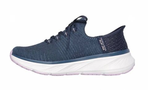 Enjoy well-cushioned performance while minding your footprint wearing Skechers Hands Free Slip-ins® Relaxed Fit®: Edgeride - Impression. Designed with recycled materials, this vegan athletic style features a stretch knit upper with fixed stretch laces, a well-cushioned midsole, and a Skechers Air-Cooled Memory Foam® insole. Our Planet Matters®: Good for your feet. Good for the world.®